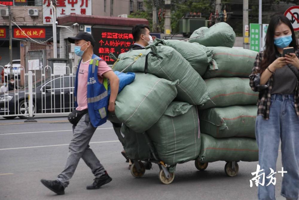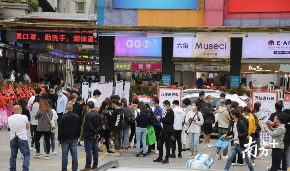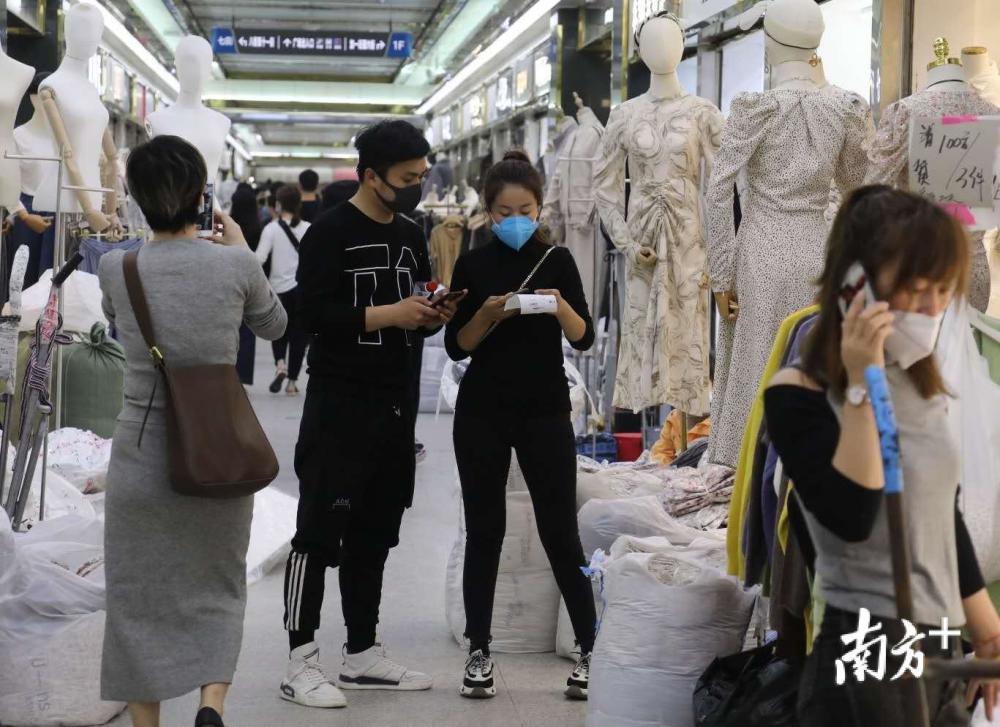 经过测温、二维码身份核验的两道关后,从业人员可“一码通行”。在万佳服装批发市场内,有7成商户恢复营业,挂好版、摆好货,档口正常运转起来。“市场一开,我们就要赶紧努力起来,迎接五月的销售旺季。”商户张先生说。